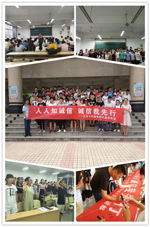 在为期一周的活动里,学院以院公益活动部为纽带,以“班”为单位,陆续开展了形式多样的诚信教育系列活动,各班级同学踊跃参与,取得良好效果。
