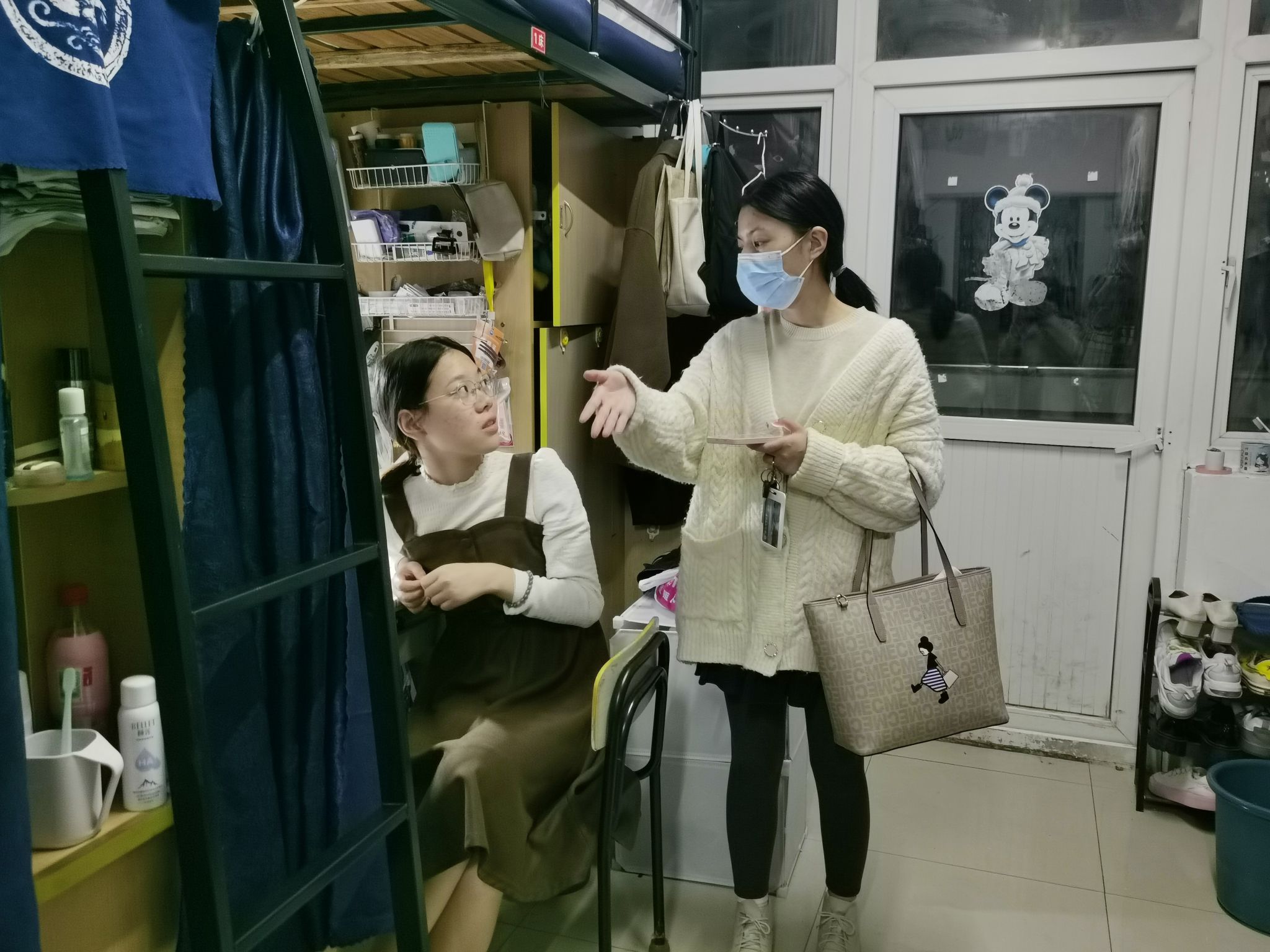 金秋送温暖,关怀入宿舍。10月19日晚,学院辅导员们深入学生宿舍,对寝室用电、卫生等情况进行了检查,也与同学们展开了深入交流,了解我院学生近期的思想动态和学习生活,给学子们送去深秋热切的关怀。走访过程中,辅导员对同学们提出的学习、生活和校园疫情防控等方面的问题进行了记录并一一解答。此外,老师们还引导学院同学应加强自我管理,严格遵守疫情防控政策,培养良好的宿舍卫生习惯,充分利用课余时间开展各种有益于身心健康的科研、文体活动,力争成为德智体美劳全面发展的新时代青年。