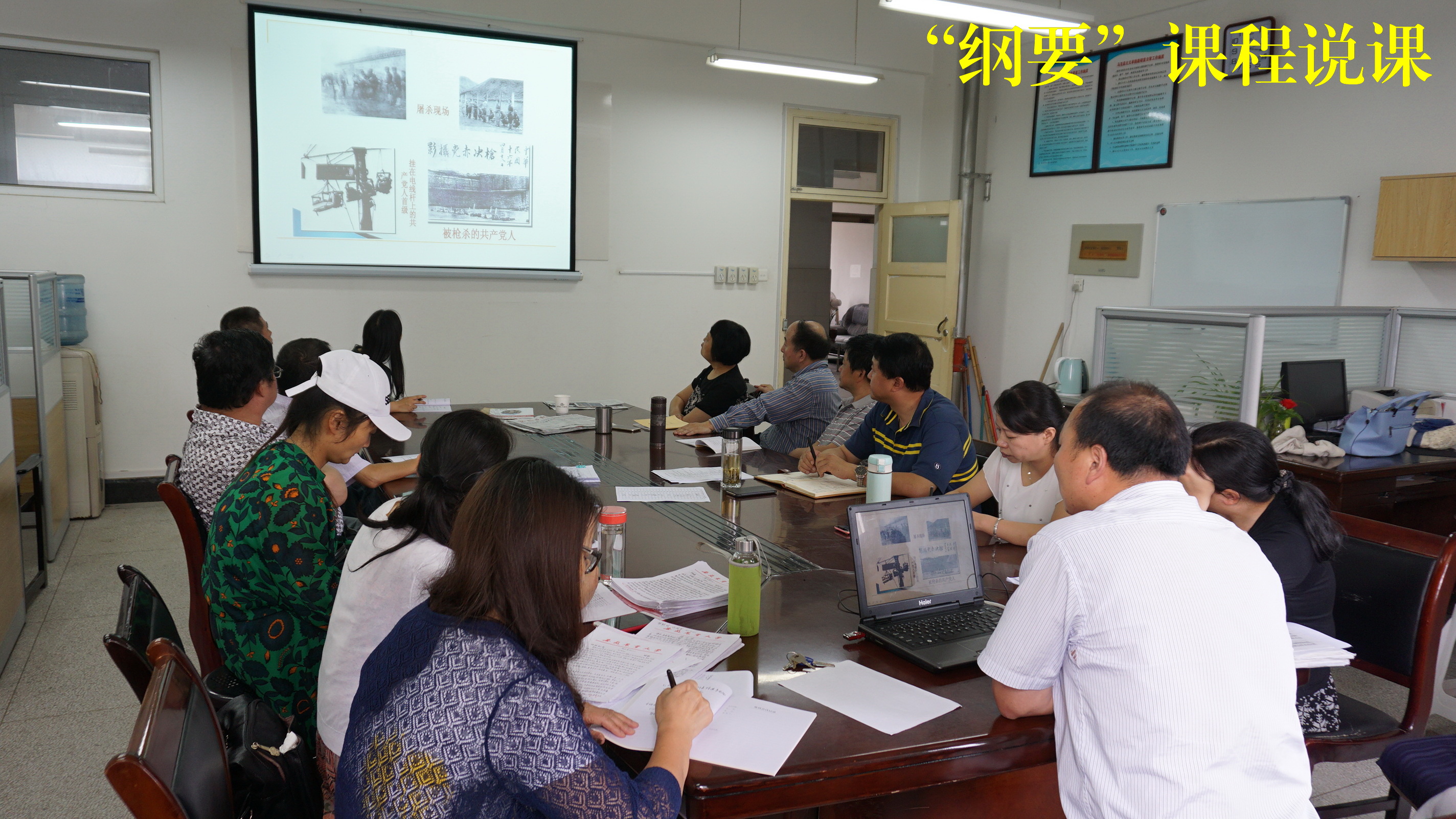 本网讯 6月14日下午,马克思主义学院一场说课展示活动在人文楼301室进行,老师们聆听了“中国近现代史纲要”课程徐建军老师就“中国革命新道路”进行的说课展示。这也是继“马克思主义基本原理概论”和“毛泽东思想和中国特色社会主义理论体系概论”两门课程说课展示之后,马克思主义学院本学期开展的第三次说课展示。