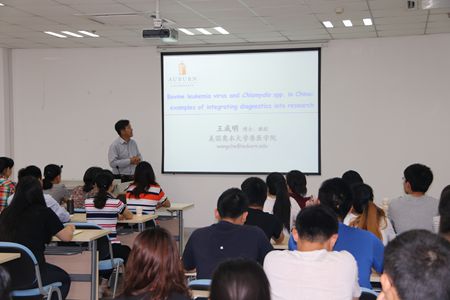本网讯6月14日上午,安徽农业大学动物科技学院、兽医病理生物学与疫病防控安徽省重点实验室诚邀美国奥本大学终身教授王成明教授、中国农业科学院上海兽医研究所韩先干研究员做客“动物医学前沿领域科学家论坛”。