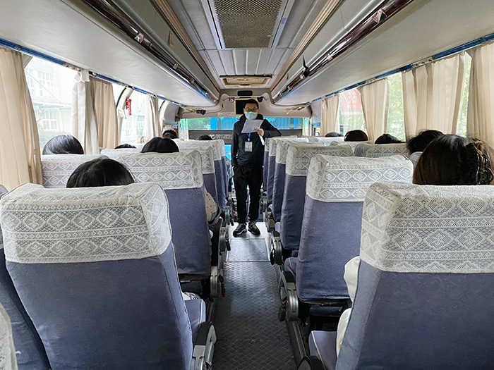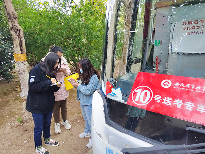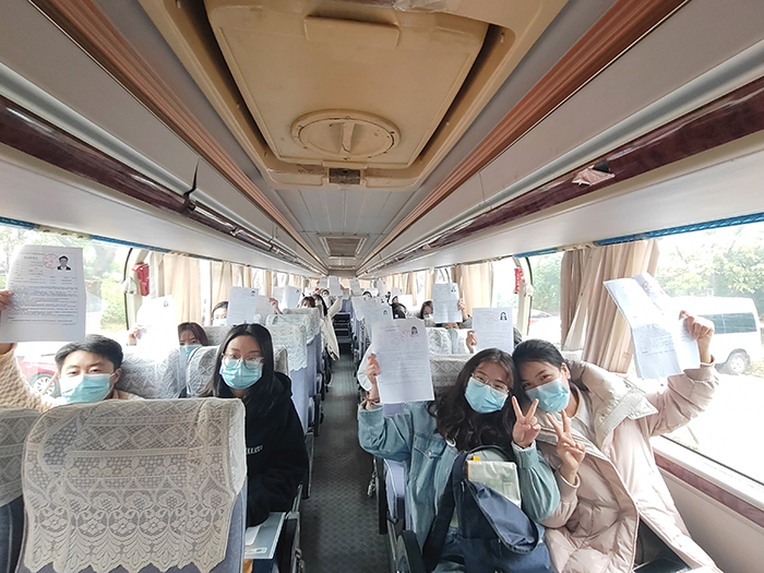 简短的交流,不仅拉近了大家的距离,更缓解了同学们的考前焦虑。林学院2021级研究生徐佳佳表示,“我是一名研究生党员,很有幸能参与这场特殊的考试。一开始,由于疫情变化太快,我准备放弃这场考试。但是在学校、老师们的合力帮助下,我决定继续前行。胡老师在车上告诉了我们学校和老师们的努力以后,我很感恩,是学校和老师们让我感受到了处处真情,更感觉了教育工作者的责任”。据悉,10号车地考生们为了纪念这次特殊的考试,在大巴车上纷纷举起了自己的准考证,定格了这次特殊而美好的回忆。