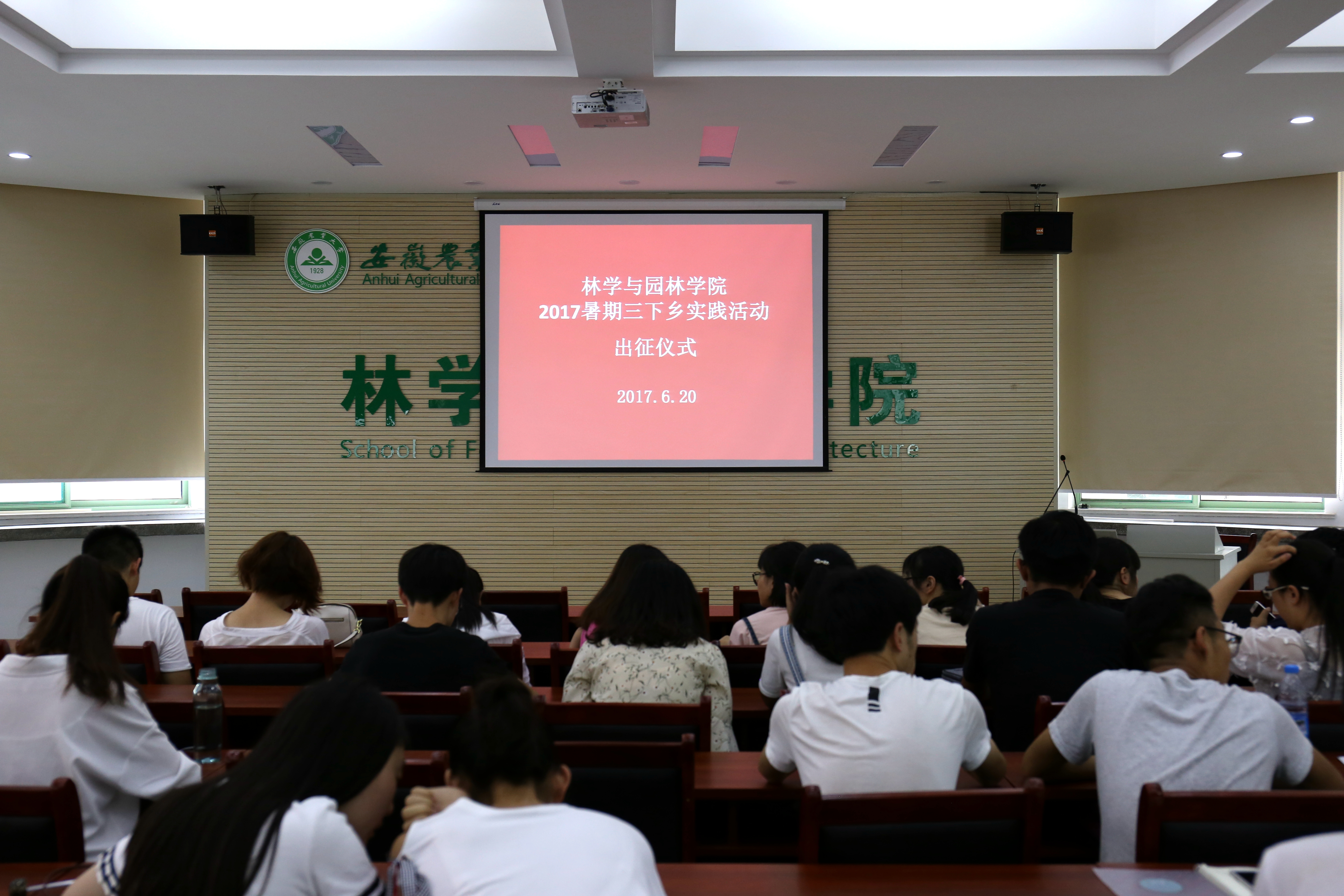 本网讯 6月20日下午,林学与园林学院2017暑期“三下乡”实践活动出征仪式在林学楼二楼报告厅举行,学院党政领导唐红萍、刘盛全、江正君,以及院团委老师参加了出征仪式。仪式由院团委老师主持。各支出征队伍参加仪式。