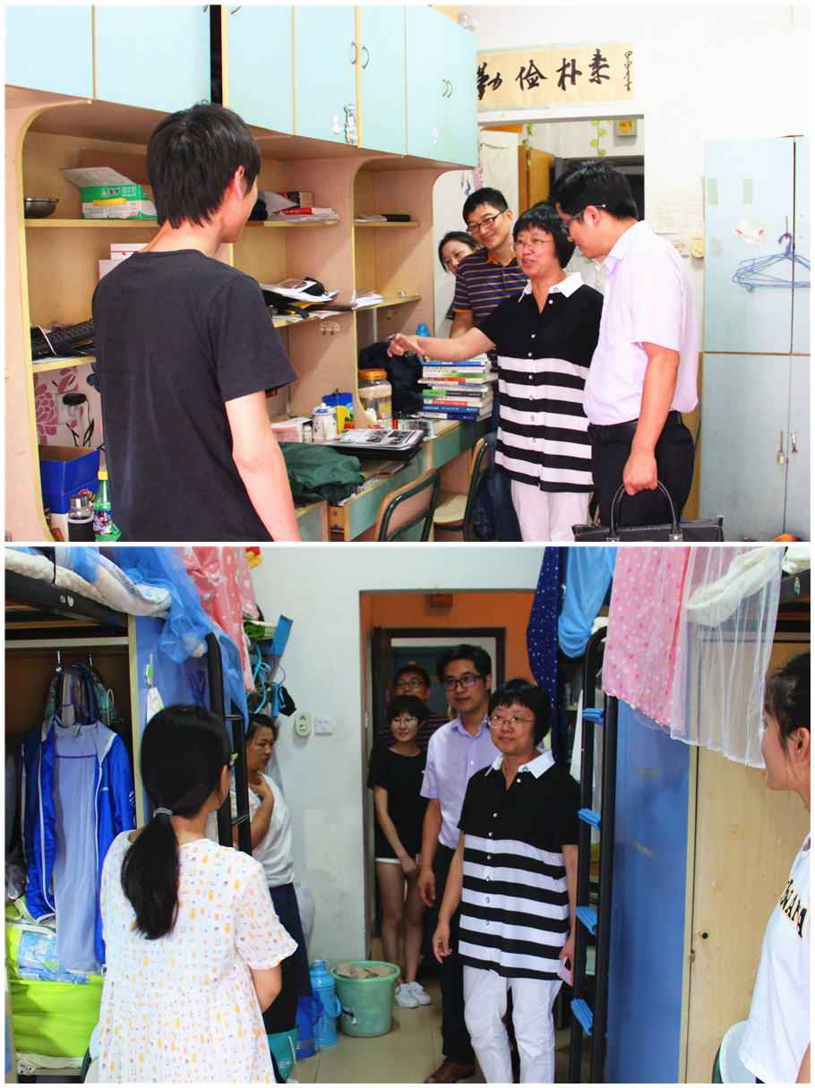 每到一个宿舍,蔡永萍都细致地了解毕业生的学习情况、就业状况和生活近况,并对毕业生今后的工作学习等方面提出了良好建议。针对学生宿舍物品较多,特别是电脑等贵重物品多、宿舍人员出入频繁等情况,吴国卿嘱咐毕业生要提高安全意识,保管好个人贵重物品,注意人身及财产安全,做到安全文明离校。语重心长的叮嘱中透着学校对毕业生的不舍之情,也温暖了每一位同学的心。