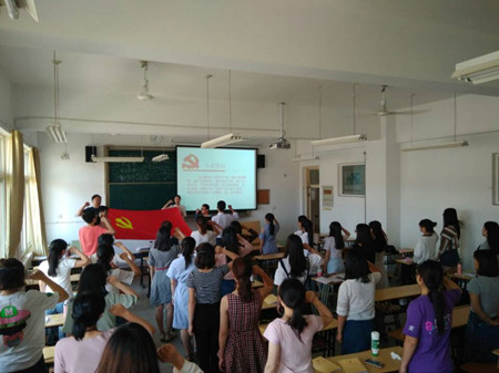 5月20日,学生第一党支部书记陈东辉为即将走向工作岗位的毕业班党员上了一堂《立足岗位做贡献,做讲规矩、有纪律的合格党员》党课。学院党委副书记黄庆华围绕毕业离校关键时期,给党员同学提了几点希望,他希望党员同学发挥党员主心骨作用,继续做好学校学院与同学之间沟通的桥梁和纽带;主动亮出党员身份,明确党员使命和责任,站好最后一班岗,积极主动的在毕业生文明离校的工作中发挥应有作用。最后,在庄严的党旗面前,全体毕业班党员重温了入党誓词。