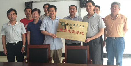 本网讯为进一步落实优秀生源基地建设工作,加强学校与地方中学之间的交流,宣传我校招生政策,6月26日,动物科技学院在院党委书记张平的带领下,来到泗县一中进行安徽农业大学优秀生源基地建设签约挂牌,动物科技学院副院长孙裴、院团委相关负责老师参加了此次挂牌工作。