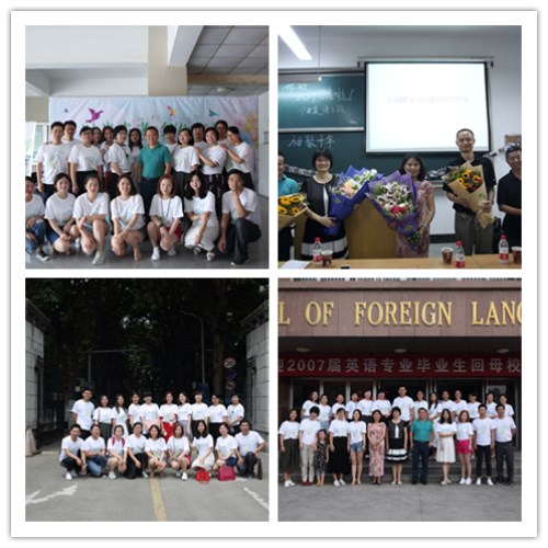 本网讯 6月24日上午,外国语学院2007届英语专业3班校友们从祖国的大江南北汇聚母校,与学院老师在外语楼209教室欢聚一堂,共叙师生之情,共话同窗之谊,学院党政领导姚莉、孙志农、张剑韵、王玉明和班主任刘成科老师应邀出席座谈会。