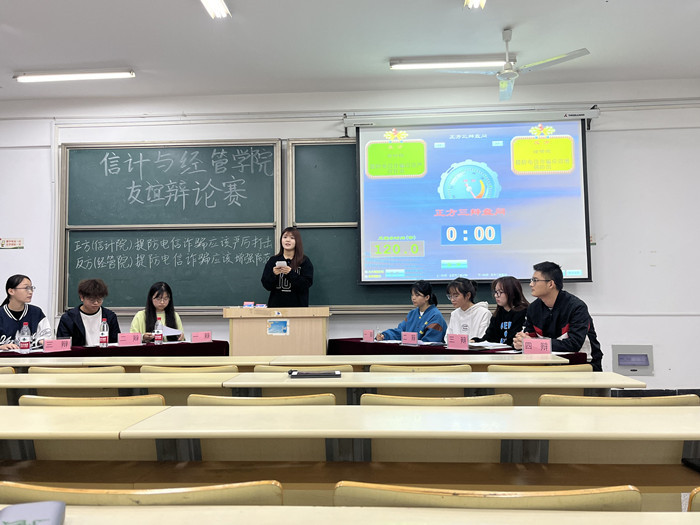 创新反诈骗宣传载体,开展“反诈骗”专题辩论。10月30日,学院以“提防电信诈骗应该严厉打击/提防电信诈骗应该增强防范”为主题,开启了一场精彩的反诈骗主题辩论赛。辩论赛一方面有效提高了同学们的辩论能力和逻辑思维能力,另一方面也帮助同学们了解防诈骗的重要性。学院希望通过辩论赛共同营造全院反诈骗的浓郁氛围。
