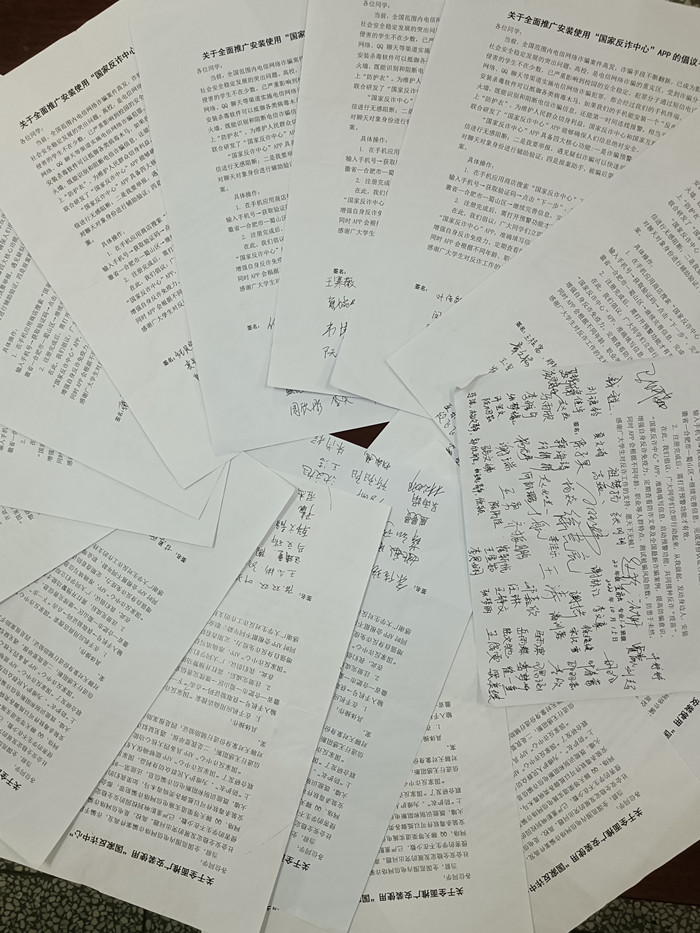 落实防诈骗倡议书,达成反诈骗共识。10月1日-15日,各班级开展了班级防诈骗集中倡议,引导全体同学安装使用“国家反诈中心”APP,安装率达100%。学院希望通过倡议引导,让学生充分认识“国家反诈中心”APP在信息预警、快速举报、警示教育等方面的有效性和实用性。2022级电子商务班叶暕同学表示,“反诈骗从我做起,发动身边人,共同接种反诈‘疫苗’,增强自身反诈‘免疫力’。”