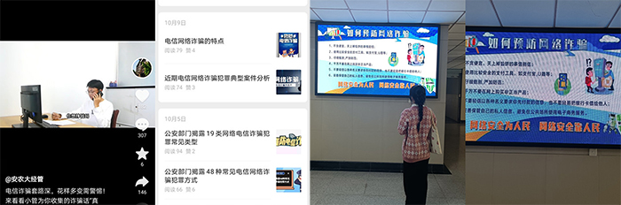 融媒矩阵式宣传,共筑“反诈”安全网。据了解,学院开展反诈骗主题班会94场,对2701名本科生进行了反诈骗再教育。9月30日,学院通过官方抖音平台发布了《电信诈骗套路深,花样多变需警惕》短视频,引发师生共鸣,点赞和评论不断。10月5日-9日,学院微信公众号发布了五篇反诈骗宣传,内容涉及电信网络诈骗的特点、常见的电信网络诈骗方式、典型的案件分析,以及遭遇电信网络诈骗后的报案流程等。10月1日-30日,学院通过电子屏滚动播放防骗知识,再次强化师生的反诈骗意识。同时,各辅导员也将微信、抖音等平台发布的内容纷纷转发至班级群,鼓励班级学生热烈讨论,达成预防电信网络诈骗的强烈共识,营造浓郁的反诈骗氛围。