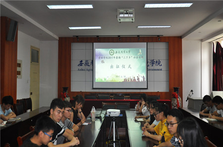 本网讯 6月30日下午,资源与环境学院2017年暑期“三下乡”社会实践出征仪式在十教418室举行。学院党委副书记张晓伟、院团委老师、各实践团成员参加了仪式。