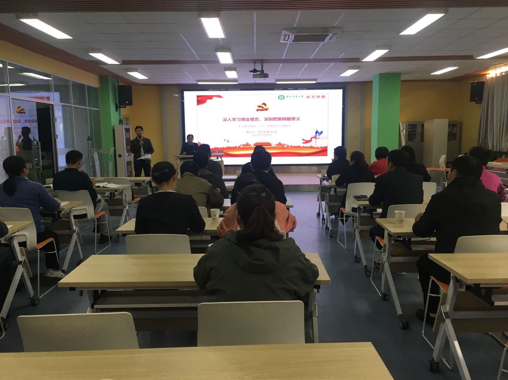 本网讯 11月9日下午,后勤保障处邀请机关党委书记刘凯同志为全处5个支部党员,作题为《深入学习领会报告 深刻把握精髓要义》辅导报告。党课由后勤保障处副处长(主持工作)江海波主持。