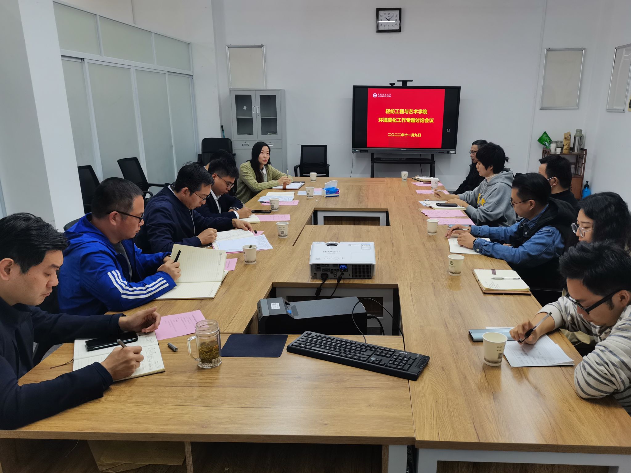 本网讯 11月9日上午,轻纺工程与艺术学院在轻纺艺术楼309会议室召开环境美化工作专题研讨会。会议由学院党委副书记、副院长汪钟凯主持。后勤保障处副处长江海波、林学与园林学院相关专家应邀参加会议。