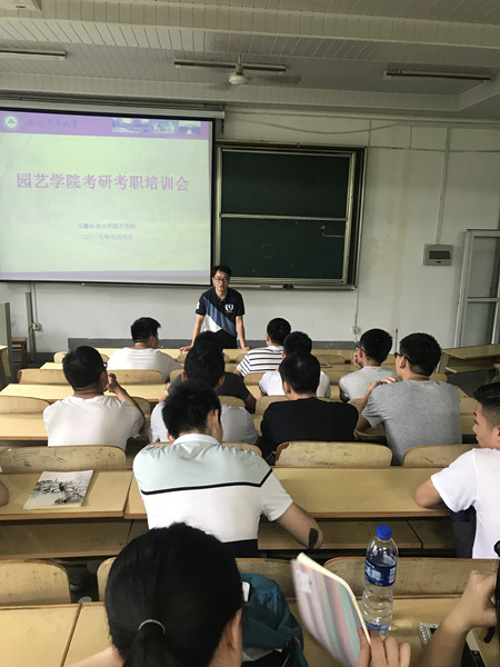 本网讯 7月6上午,园艺学院邀请校友2004届信息与计算机专业、现任安徽科大纵横教育科技有限公司CEO张志军和2017届毕业生阚健与在校生交流考研和选调生备考经验。