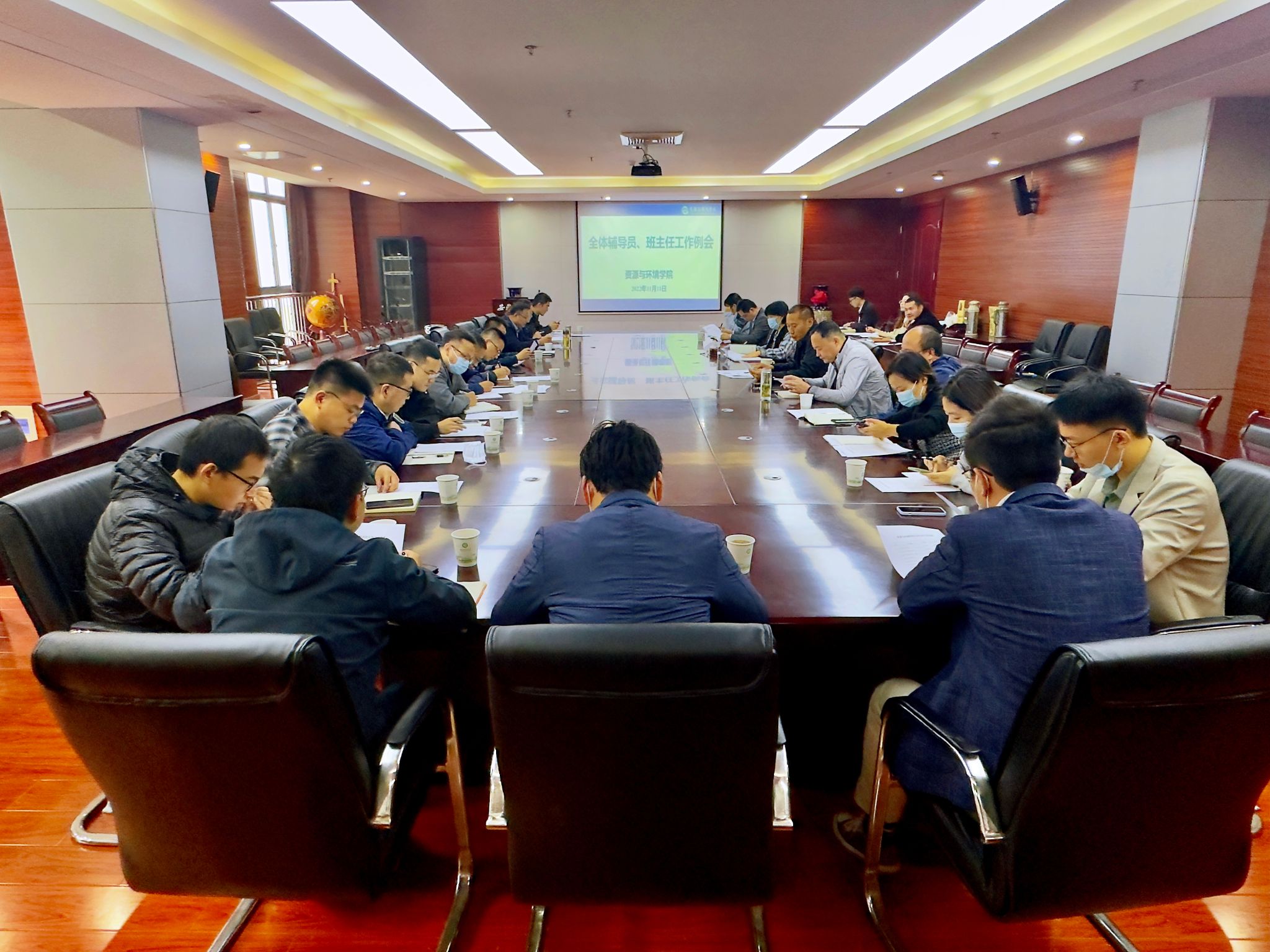 本网讯 11月11日上午,资源与环境学院全体辅导员、班主任工作会议在中西部综合楼南楼510会议室召开。学院党政领导、全体辅导员、班主任参加会议。