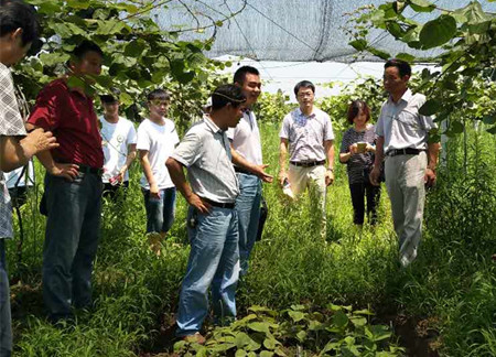 在马鞍山市当涂县护河镇夏荷家庭农场,支部党员贾兵副教授深入浅出的为当地种植企业和农户剖析安徽水果种植现状,果树种植面积过大的弊端,叮嘱大家应因地制宜的适当规模种植。支部党员带领当地种植大户和学生暑期“三下乡”团队成员深入田间地头学习梨、猕猴桃等果树的育苗、病虫害防治等技术。