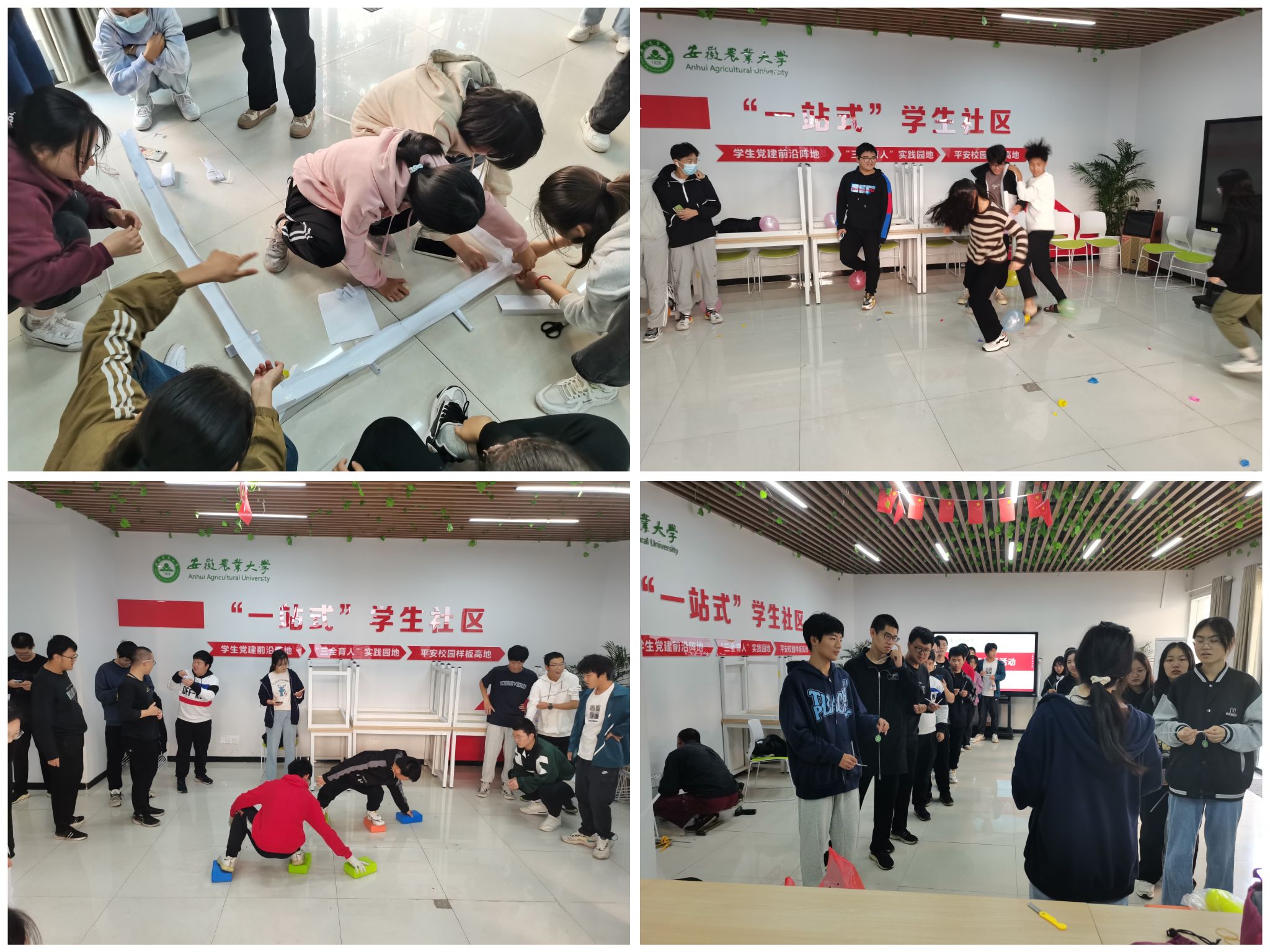 11月7日至13日,生命科学学院学生会以班级为单位举办了内容丰富精彩的新生素质拓展活动。“踩气球”、“吸管运输”、“搭建纸模型”、“台词传声筒”、 “摸石过河”“一笔画安农”……一系列简单有趣的团体小游戏,让同学们在欢声笑语之间迅速拉近了彼此的距离,为来自五湖四海的同学们提供了一个“破冰”机会,同时也让部分同学在疫情封闭式管理期间产生的郁结得以释放,缓解了学习与生活上的心理压力。