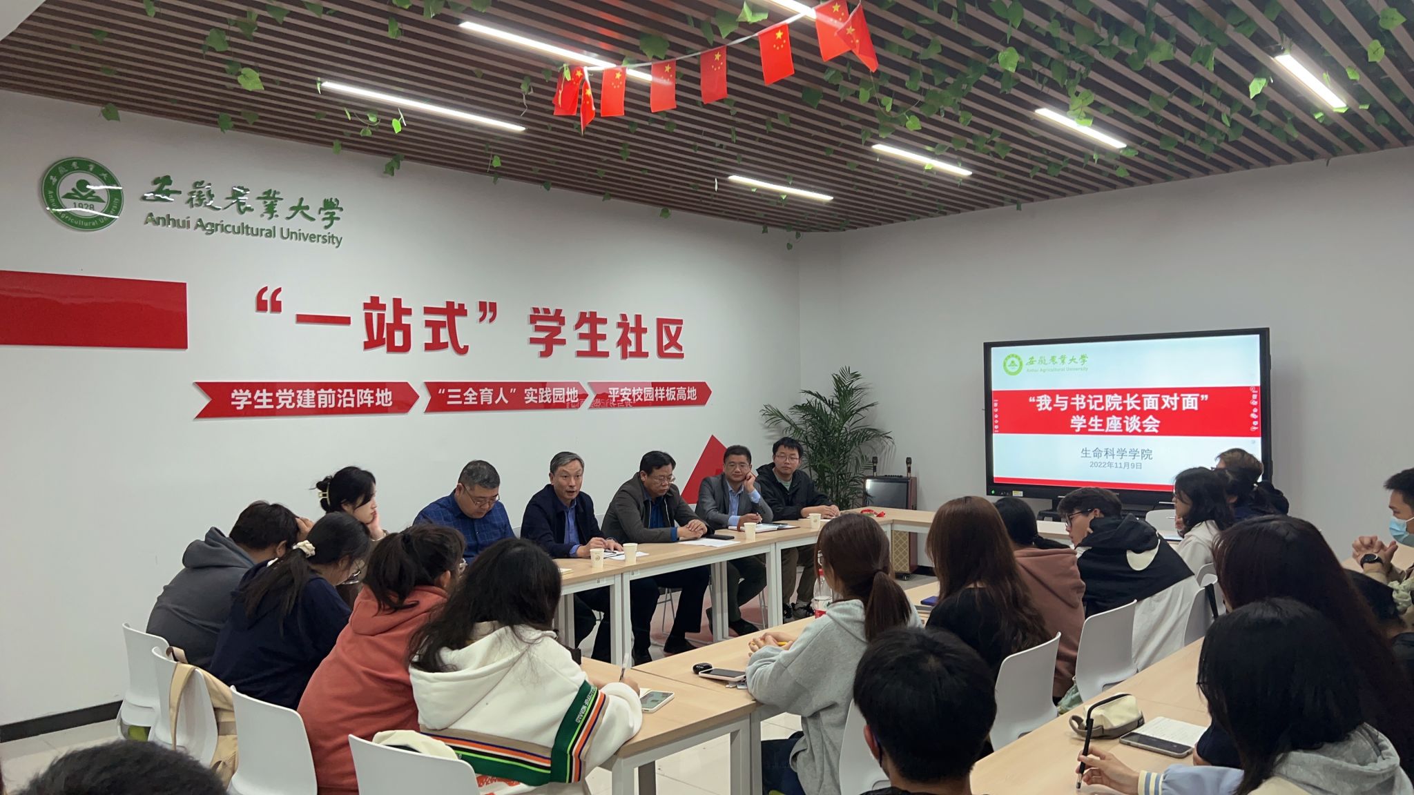 为推动“一站式”学生社区建设、落实“三全育人”理念,11月9日晚,学院党委书记甘传鹤、院长江海洋、院党委副书记闫大玮、学院专职辅导员与2022年级学生骨干齐聚一堂,开展“我与书记院长面对面”沟通交流。