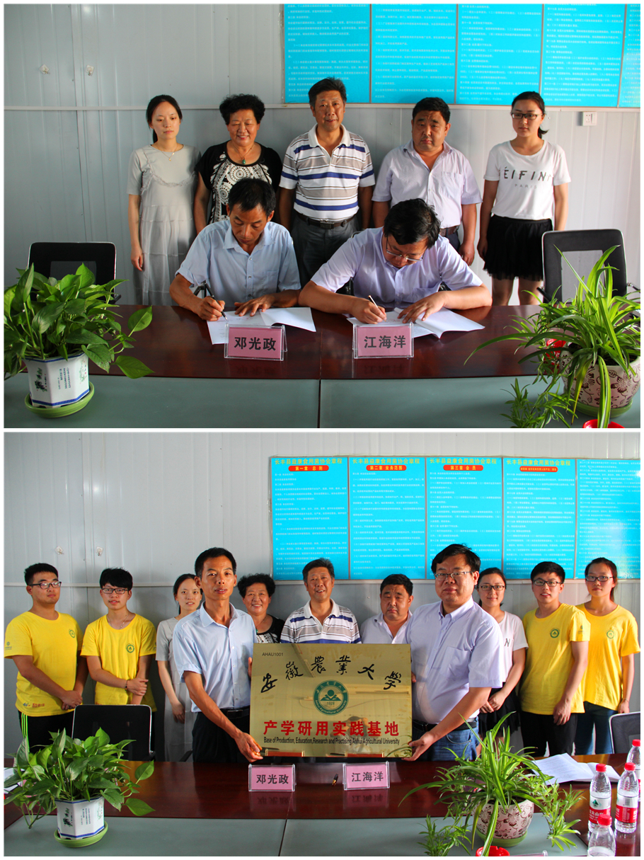 本网讯7月14日,生命科学学院与合肥益康现代农业科技开发有限公司产学研用合作签约暨挂牌仪式在长丰县吴山镇合肥益康现代农业科技开发有限公司举行。安徽农业大学党委宣传部部长、生命科学学院党委书记朱绍友,生命科学学院副院长江海洋,安徽省特色食药用菌实验实训中心主任李纯等一行参加了仪式。吴山镇党委书记杜和洲、副镇长方波应邀出席仪式,签约仪式由合肥益康现代农业科技开发有限公司总经理邓光政主持。