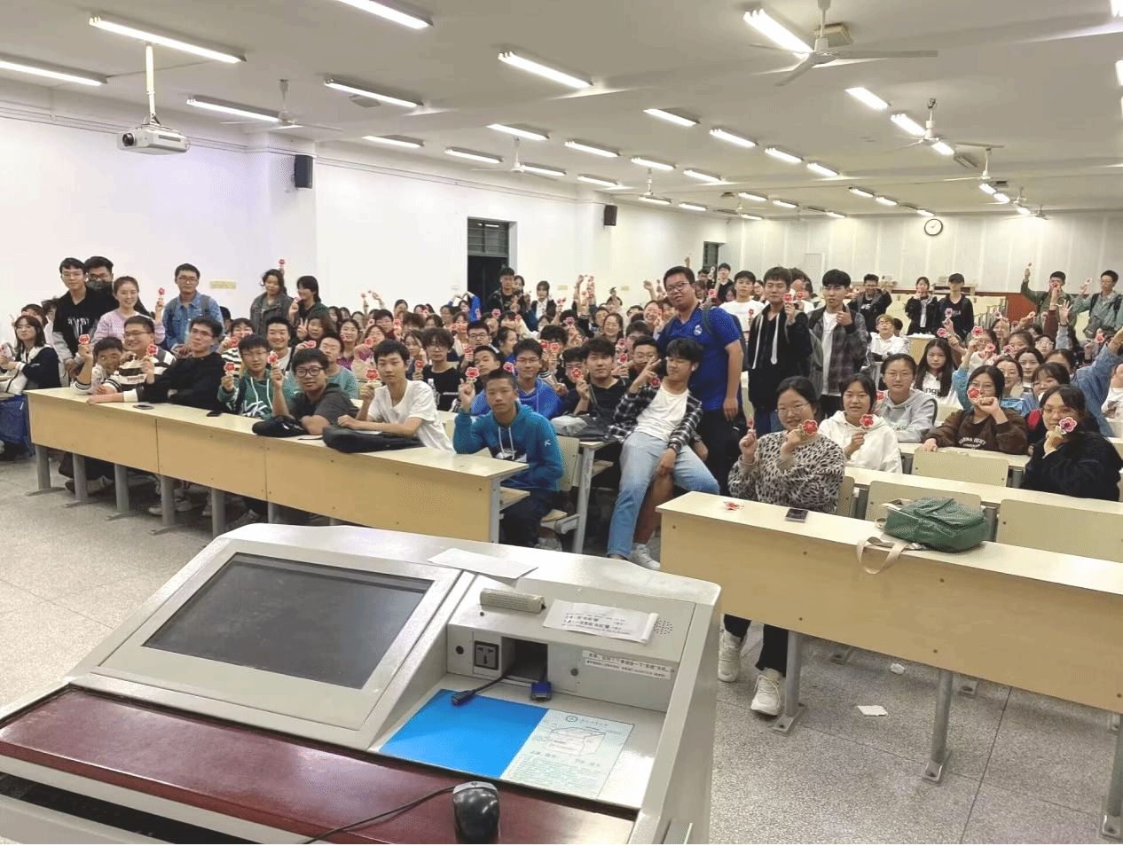 晚自习教室作为新生课后学习天地和场所,学院领导及专职辅导员坚持落实立德树人根本任务,下沉晚自习课堂,走进教室,了解晚自习开展和执行情况,为班级每位同学赠送一颗“棒棒糖”,与同学们共话共情,引导学生认真学习、健康生活,以积极向上的态度为大学开启美好新生活。