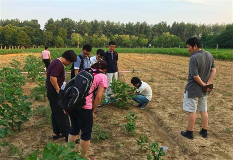 会后,与会人员冒着高温深入我校高新技术农业园实地了解诱变处理后棉花的田间变异表现。(郭宁通讯员:魏晓飞)