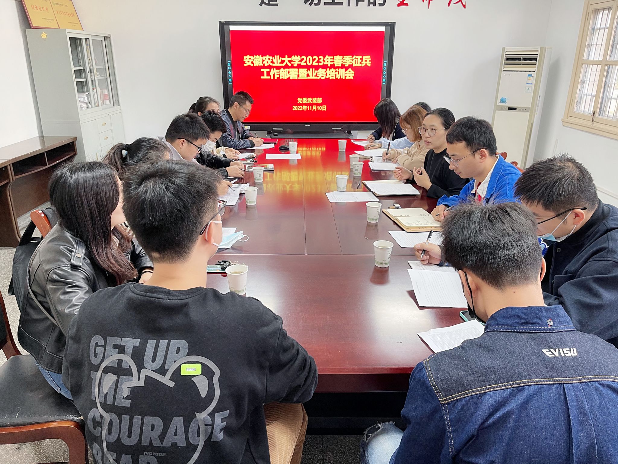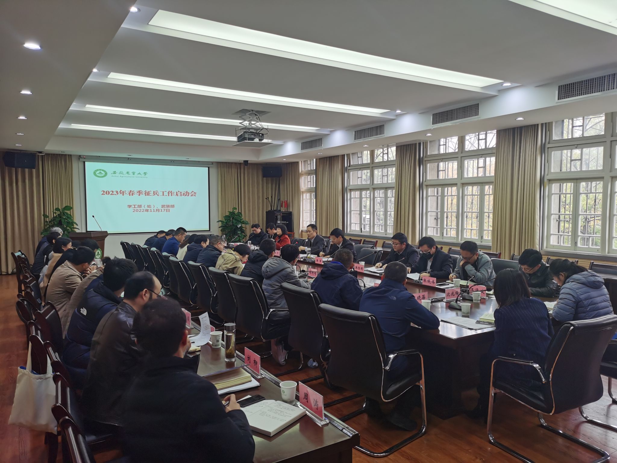 开展业务培训。11月初,学校召开2023年春季征兵工作部署暨业务培训会,对2022年征兵工作进行了系统总结,并结合《安徽农业大学大学生应征入伍工作流程操作指南(2023年版)》,对各学院征兵工作专干进行业务培训。