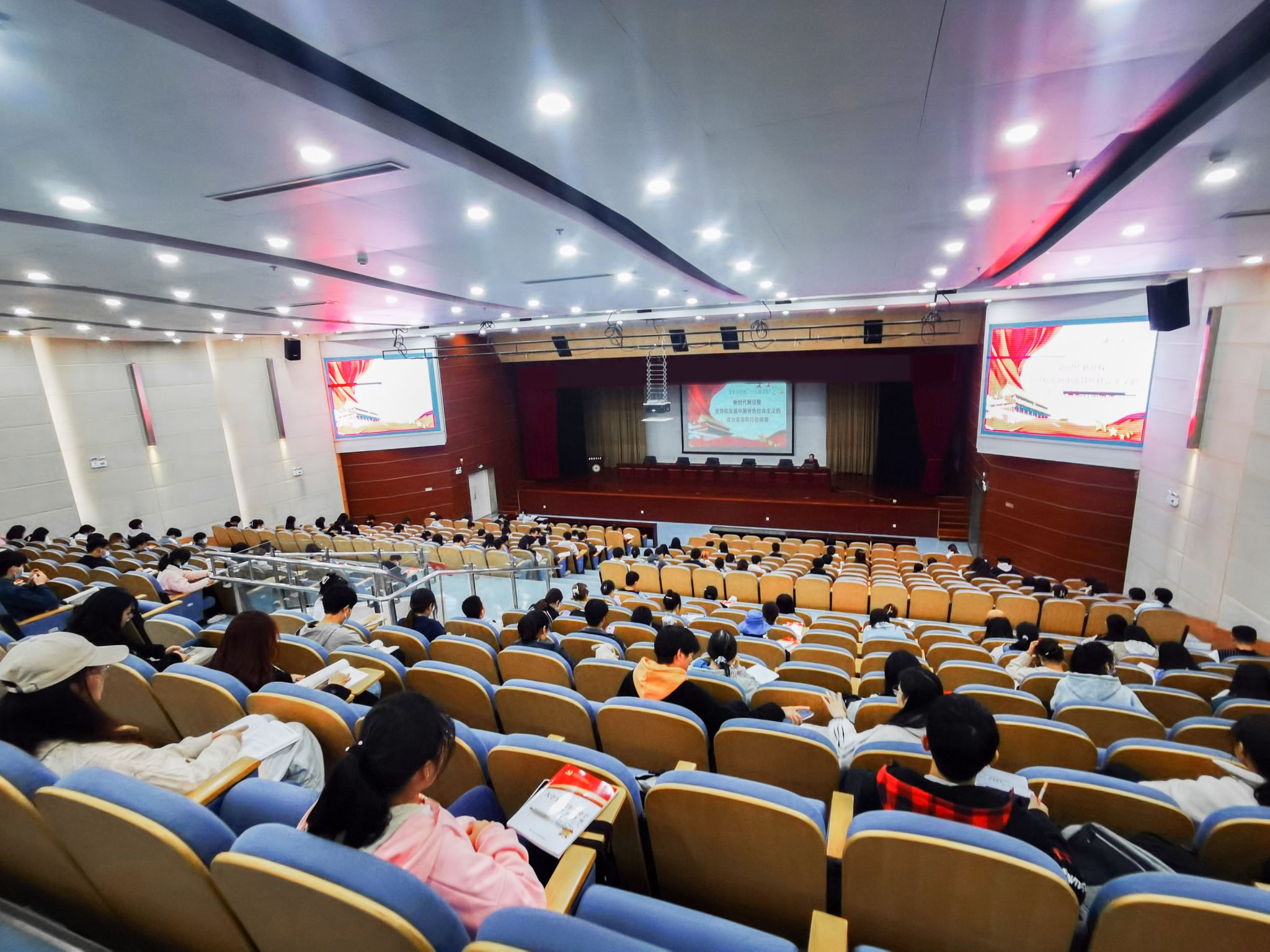 本网讯 11月18日晚,第六十四期大学生入党积极分子培训班第二片区分党校在图书馆第一报告厅举办学习党的二十大精神专题报告会。马克思主义学院党委副书记、纪委书记、副院长袁修雨应邀授课。