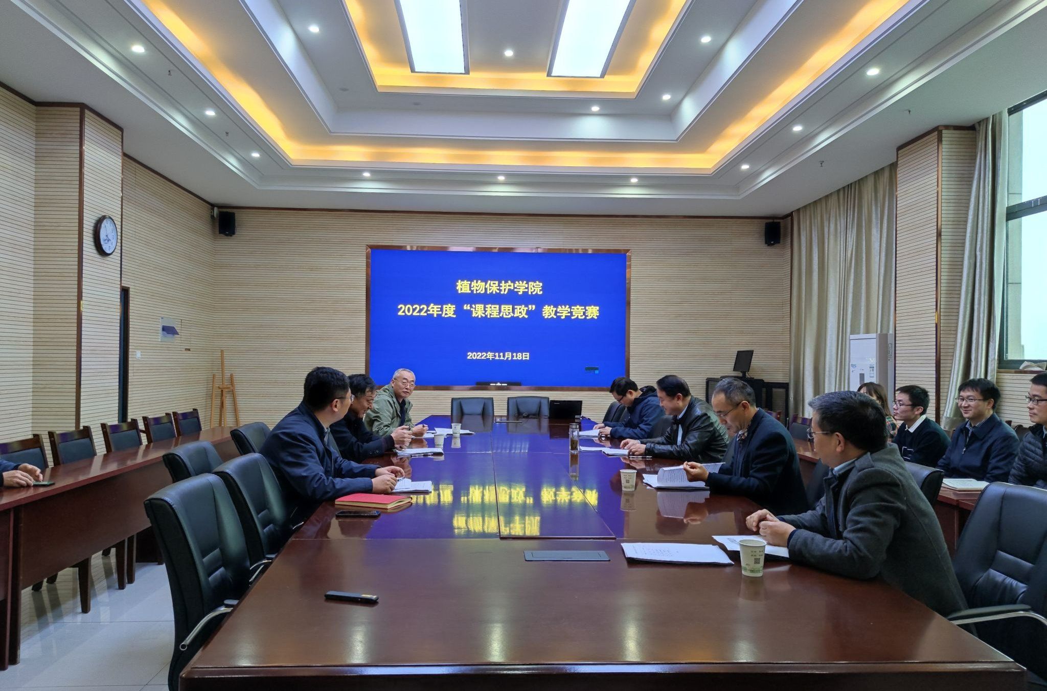 本网讯 11月18日,植物保护学院在1213会议室举办“课程思政”教学竞赛活动。人文社会科学学院院长黄洪雷、马克思主义学院党委副书记袁修雨、工学院副院长许良元以及教授代表担任竞赛评委。教务处副处长徐峰参加活动。活动由副院长唐庆峰主持。