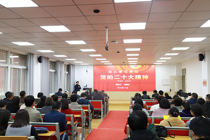 会上,校党委常委、人事处处长、经济管理学院院长蔡德军作《深入学习贯彻党的二十大精神》主题宣讲。蔡德军从深刻领会党的二十大的重大意义、准确把握党的二十大精神实质和迅速兴起学习宣传贯彻党的二十大精神的热潮三个方面作了理论宣讲。他表示,党的二十大报告思想深邃,内容丰富,要求全院教职工要坚持全面准确,原原本本、原汁原味地深入学习领会党的二十大精神,做到学深学透;要全方位、立体化地做好党的二十大精神宣传,做到入脑入心;要在思想上和行动上把“两个确立”“两个维护”作为最高政治原则和根本政治规矩,抓好党的二十大精神贯彻落实,主动结合学院工作实际,做好博士点申报、国家一流专业建设、人才引进、专业学科发展、教学科研、人才培养和学生管理等各项工作,坚定信心、同心同德,埋头苦干、奋勇前进,不断推进学院高质量发展。
