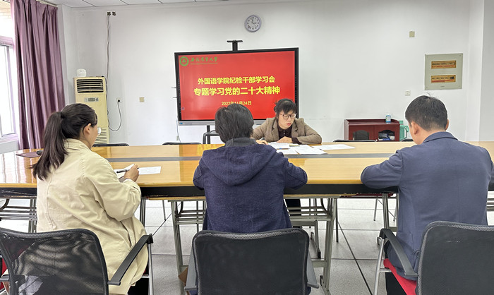 本网讯 11月24日下午,外国语学院在外语楼405会议室召开纪检干部学习会,学院纪委委员、党支部纪检委员参会。会议由院党委副书记、纪委书记、副院长姬惠惠主持。