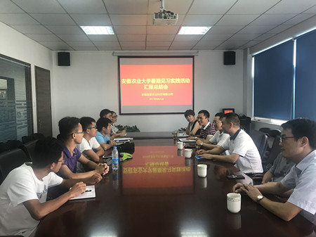 本网讯 8月21日,校教务处副处长李玮、园艺学院党政领导张令峰、裴孝伯、吴永红一行4人赴安徽国豪农业科技有限公司看望在此实习的2018届学生,并与学生开展座谈交流。