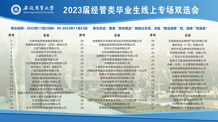 本网讯 为统筹疫情防控和毕业生就业,经济管理学院充分借助网络平台,积极邀请用人单位,于11月23日-25日成功举办2023届经管类毕业生线上专场双选会。