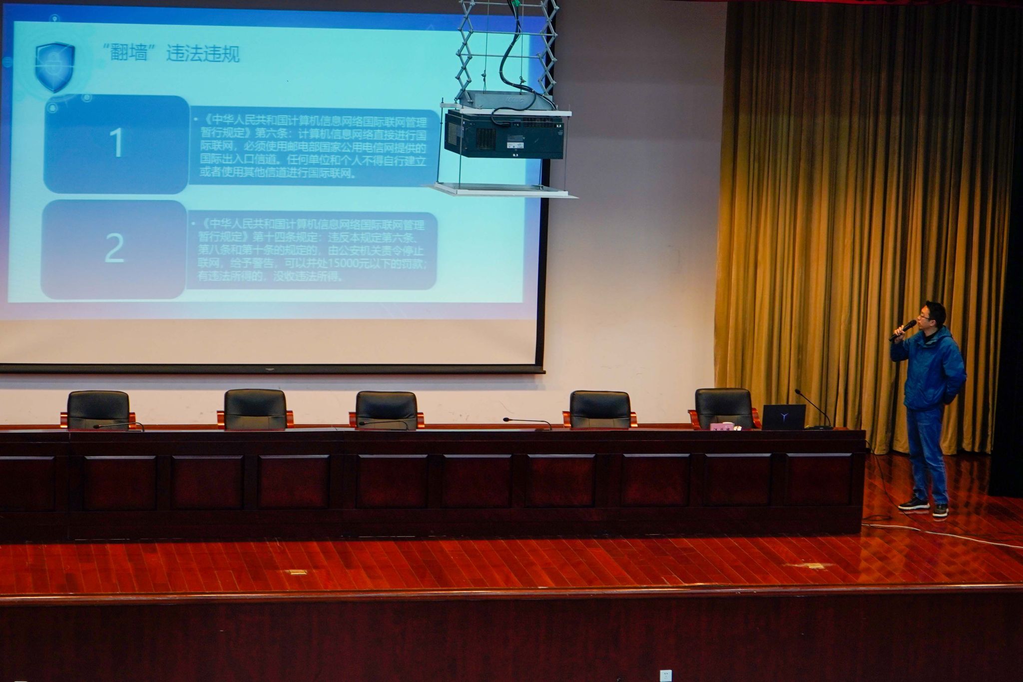 为了全面提高信计学子的网络安全意识,学院邀请信息安全专业副教授汪益民老师分专业持续开展主题为《“翻墙”不可行,上网需谨慎》的网络安全教育讲座。截至目前,学院已组织2021级、2022级全体本科学生接受了网络安全教育。讲座通过解析“翻墙”监测原理、枚举“翻墙”处理案例等,让同学们更加深刻地认识到了“翻墙”的危害,强化了信计学子的网络意识形态安全底线意识,进一步引导信计学子提高思想站位,自觉承担起维护网络安全的责任担当。