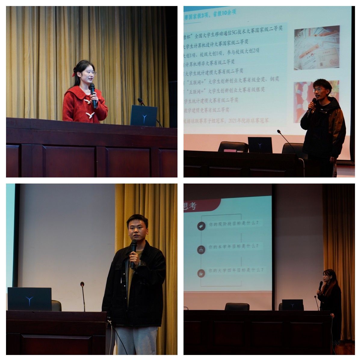 11月24日,信息与计算机学院开展了“榜样的力量”宣讲活动。本次宣讲活动邀请了学院优秀学生代表分享自己的优秀事迹,以树立榜样意识,激励信计学子勇攀高线。宣讲会上,2019级物流工程专业的章欣主要结合自己的保研到武汉理工大学的经历,寄语学弟学妹们“相信自己,勇于去做;珍惜机会,永不言弃”;2019级通信工程专业的苏灏杨从学习经验、竞赛经验、未来规划等方面作了系统性的经验分享。2019级智能科学与技术专业的刘俊重点分享了他入选校第25届研究生支教团的经历,激励学弟学妹们在志愿服务、社会实践中增长才干!2019级电子信息工程专业的郑雪琦主要分享了自己的奋斗历程和成长心得,鼓励学弟学妹们在平凡中成就不平凡!2021级通信专业的胡蛮蛮聆听过学长学姐优秀事迹后激动地说道:“我深深地感受到了身边榜样的力量,现在我充满信心迎接未来的每一个挑战!”。(作者:邓菁菁,一审:孙光旭,二审:李南飞,三审:周晓璇)