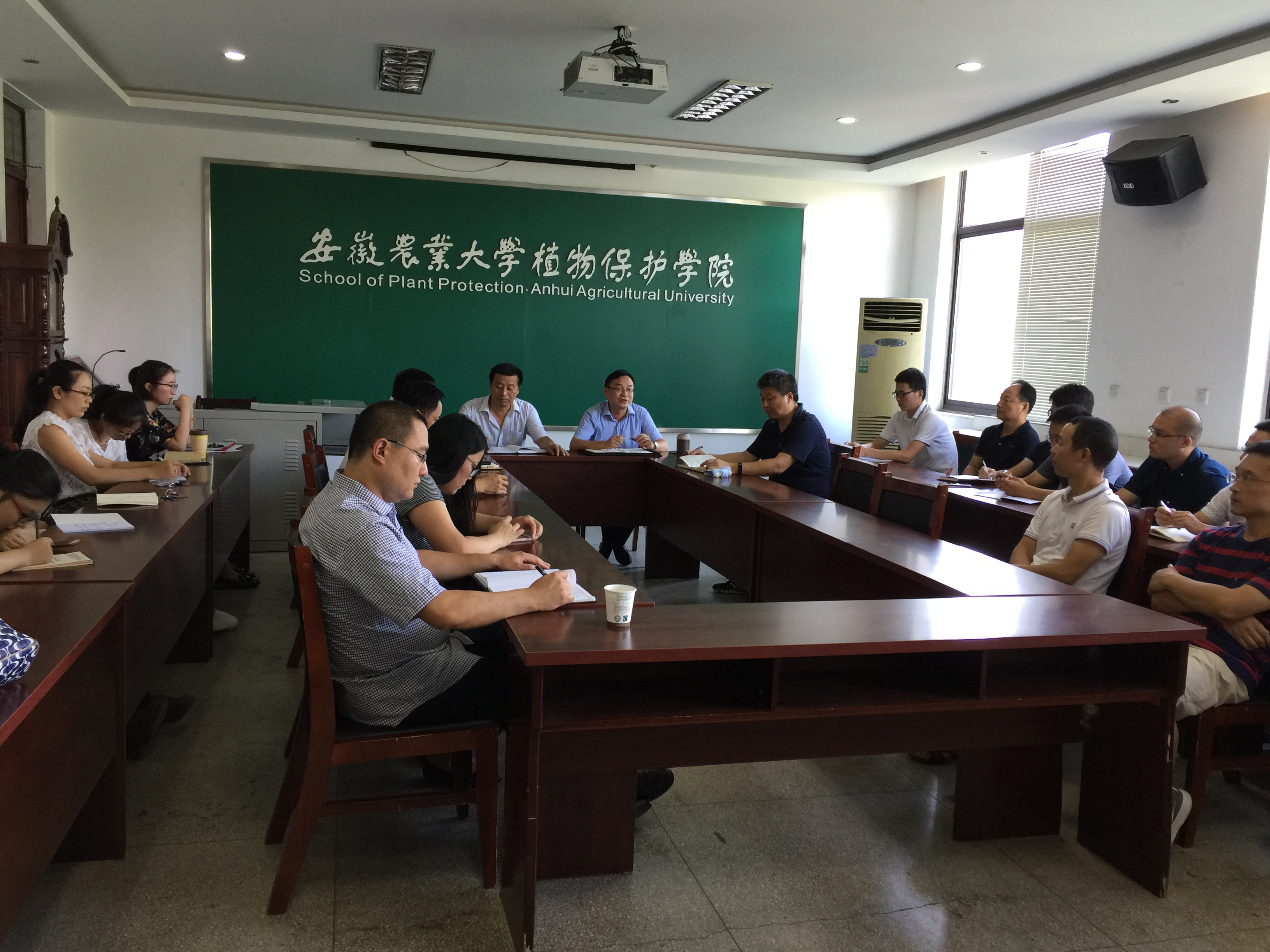 本网讯8月23日,植物保护学院在学院会议室召开新学期工作部署会,全院教工参会,会议由院党委书记檀根甲主持。
