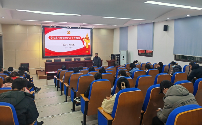 会上,学院党委书记朱绍友围绕召开党的二十大的背景、二十大报告的框架结构和基本内容等方面为大家详细解读了党的二十大主要精神。他强调,全体教职工要将学习宣传贯彻党的二十大精神作为当前和今后一个时期的首要政治任务,要深刻认识党的二十大召开的重大现实意义和深远历史意义,深刻把握党的二十大精神的丰富内涵和实践要求,同时要将学习党的二十大报告同教学科研工作实际相结合,坚持问题导向,在理论学习中汲取精神力量,把学习成效转化为推动学院高质量发展的强大动力。