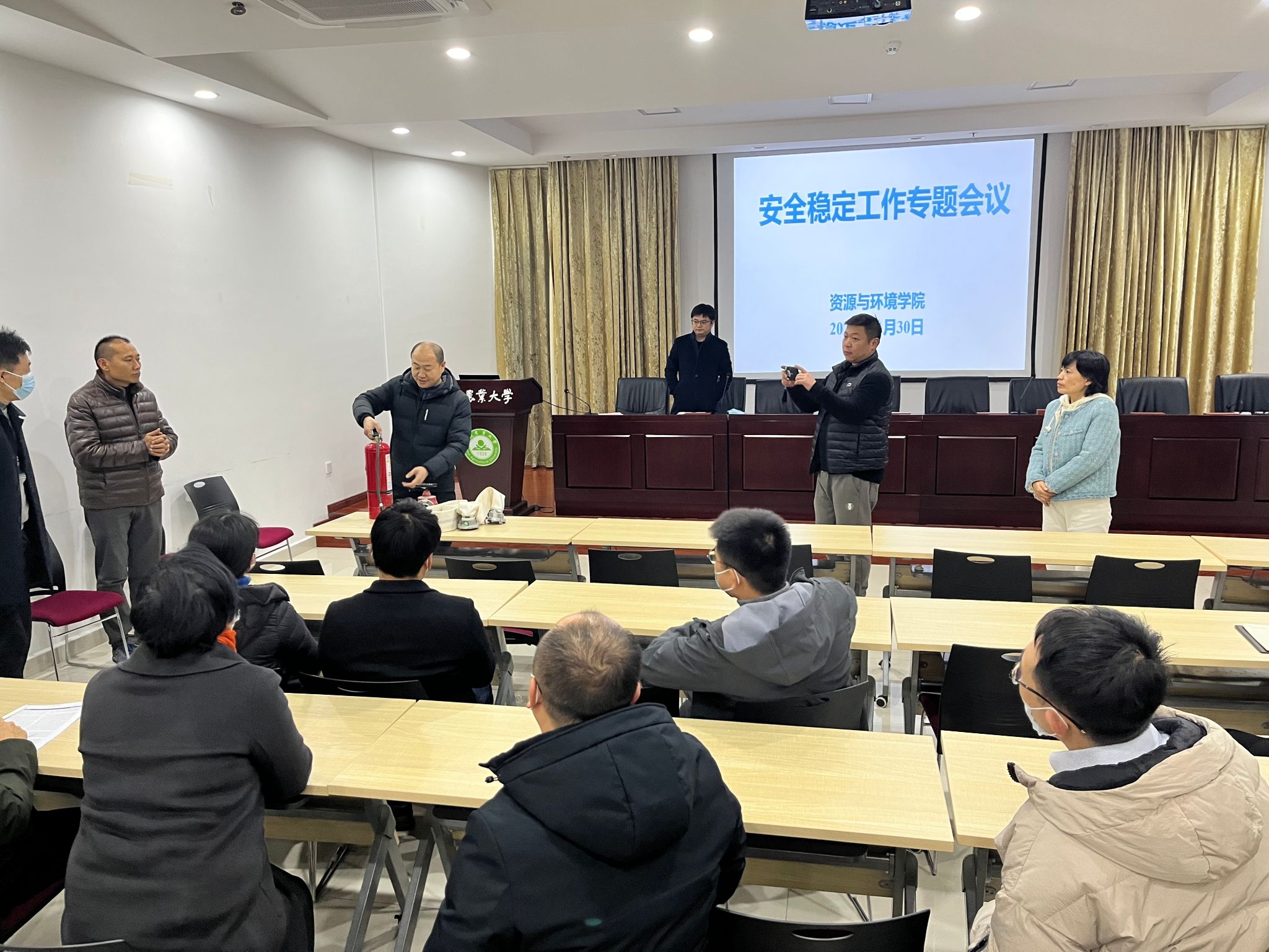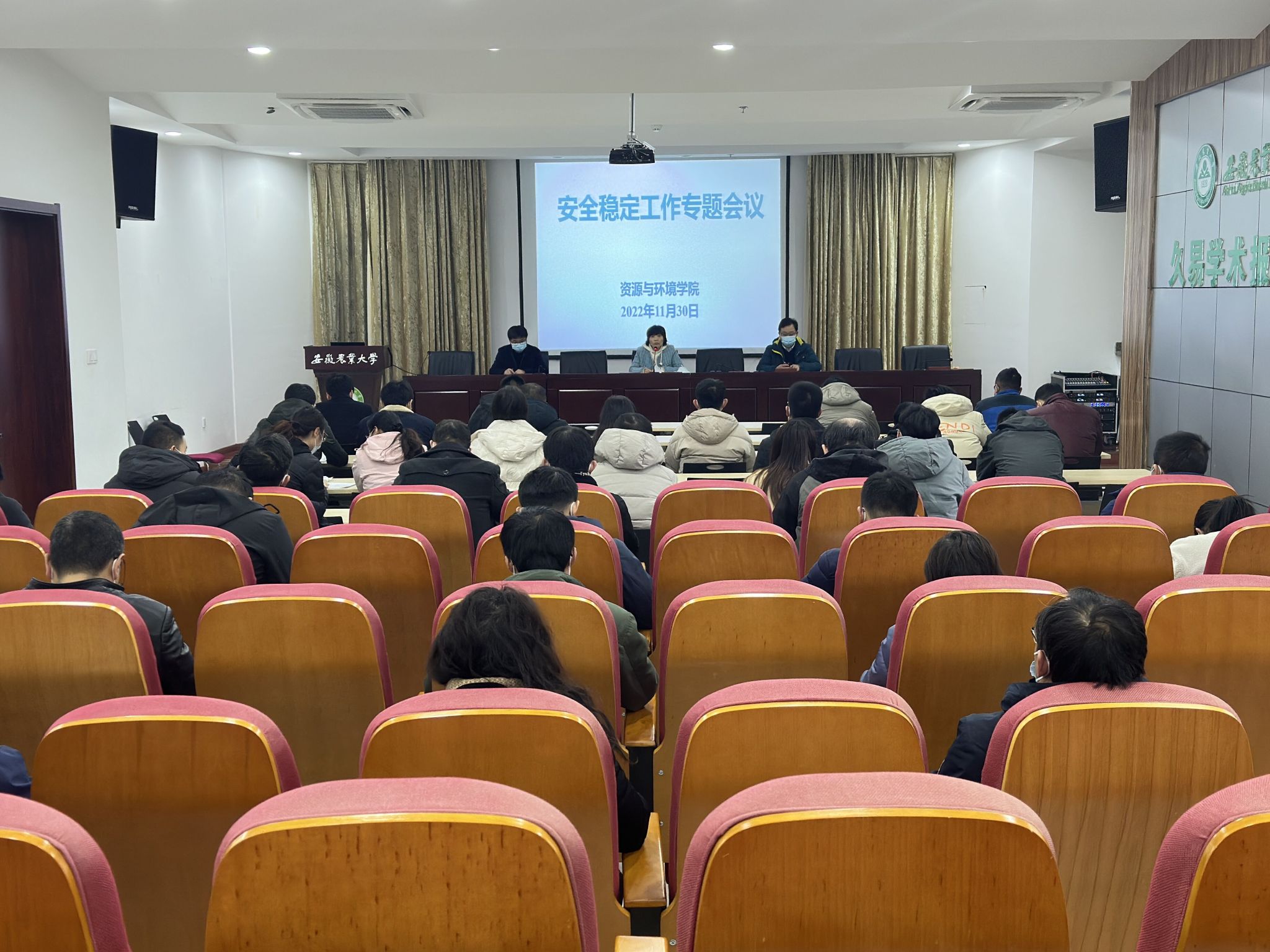 会议强调,全体师生要提高政治站位,坚决扛起疫情防控等安全稳定的重大政治责任;要牢固树立全员抓安全稳定的意识,坚决筑牢校园安全稳定防线;要不断提升维护安全稳定的工作效能,在捍卫政治安全、校园安全、实验室安全、宿舍安全、学生心理健康上下功夫、见实效。