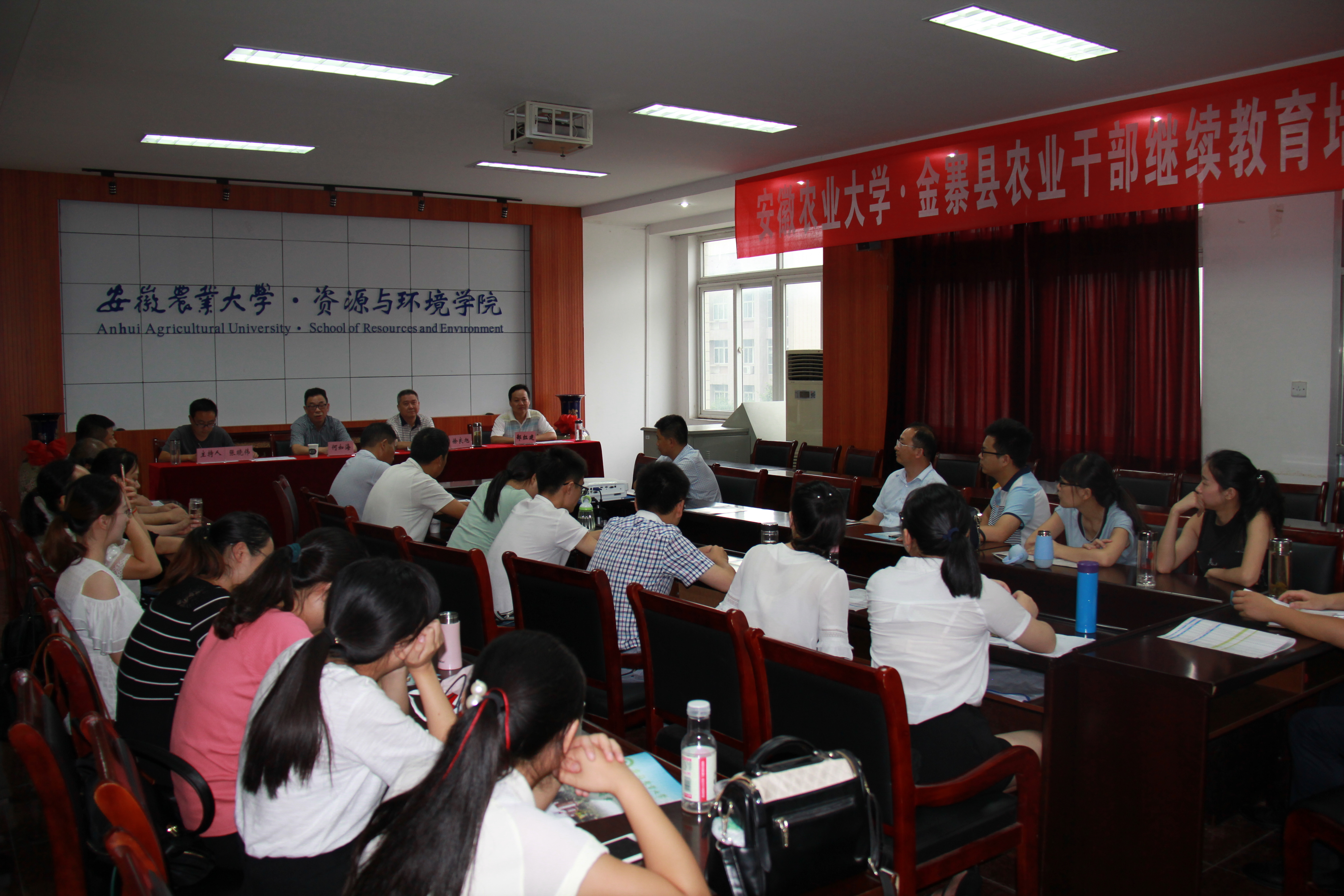 本网讯 8月25日,由继续教育学院、资源与环境学院共同承办的“安徽农业大学·金寨县农业干部继续教育培训班”结业典礼在我校举办。金寨县农发委总农艺师徐良旭,继续教育学院院长何如海、资源与环境学院院长郜红建出席结业典礼并讲话,仪式由资源与环境学院党委副书记张晓伟主持。
