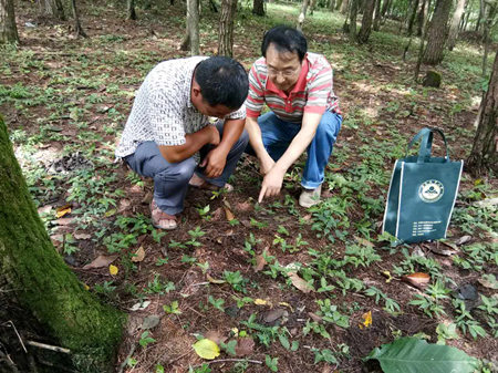 本网讯 8月26-27日,资源与环境学院党员教师蒋跃林教授、宛志沪教授,及杨书运教授等一行4人,冒着高温酷暑,赴金寨县马鬃岭林场、天堂寨镇黄河村,深入林间地头,运用具有自主知识产权的林下西洋参栽培关键技术,对当地农民进行林下西洋参安全越夏、秋季管理以及山区暴雨防灾栽培关键技术指导。