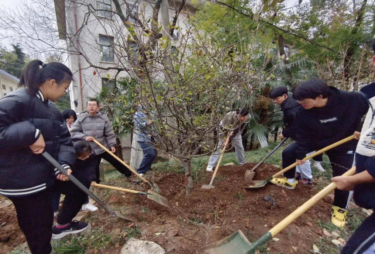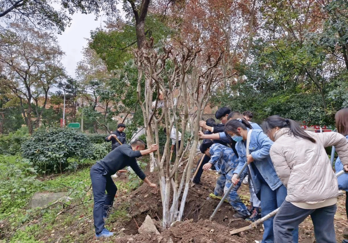 本网讯 12月3日下午,在校重点建设工作专班的指导下,资源与环境学院组织36名师生骨干,在勤学楼西侧移栽20多棵垂丝海棠,打造了一条“海棠廊道”。