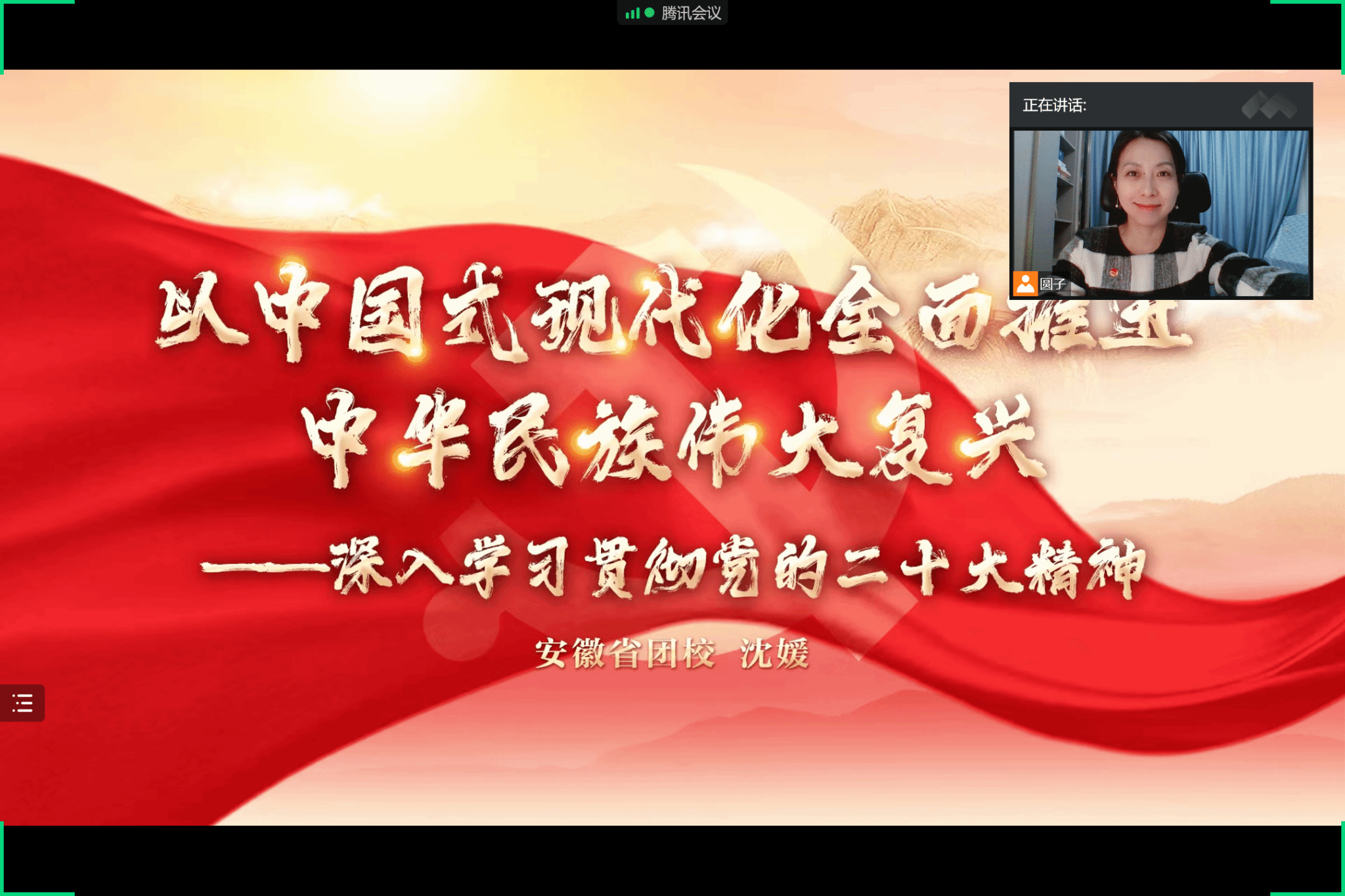 本网讯 12月5日,我校联合团省委、省团校共同开展共青团系统学习贯彻党的二十大精神暨团干部专题辅导培训会,特邀团省委沈媛副教授作专题辅导报告,800余名团干线上参加了此次培训。