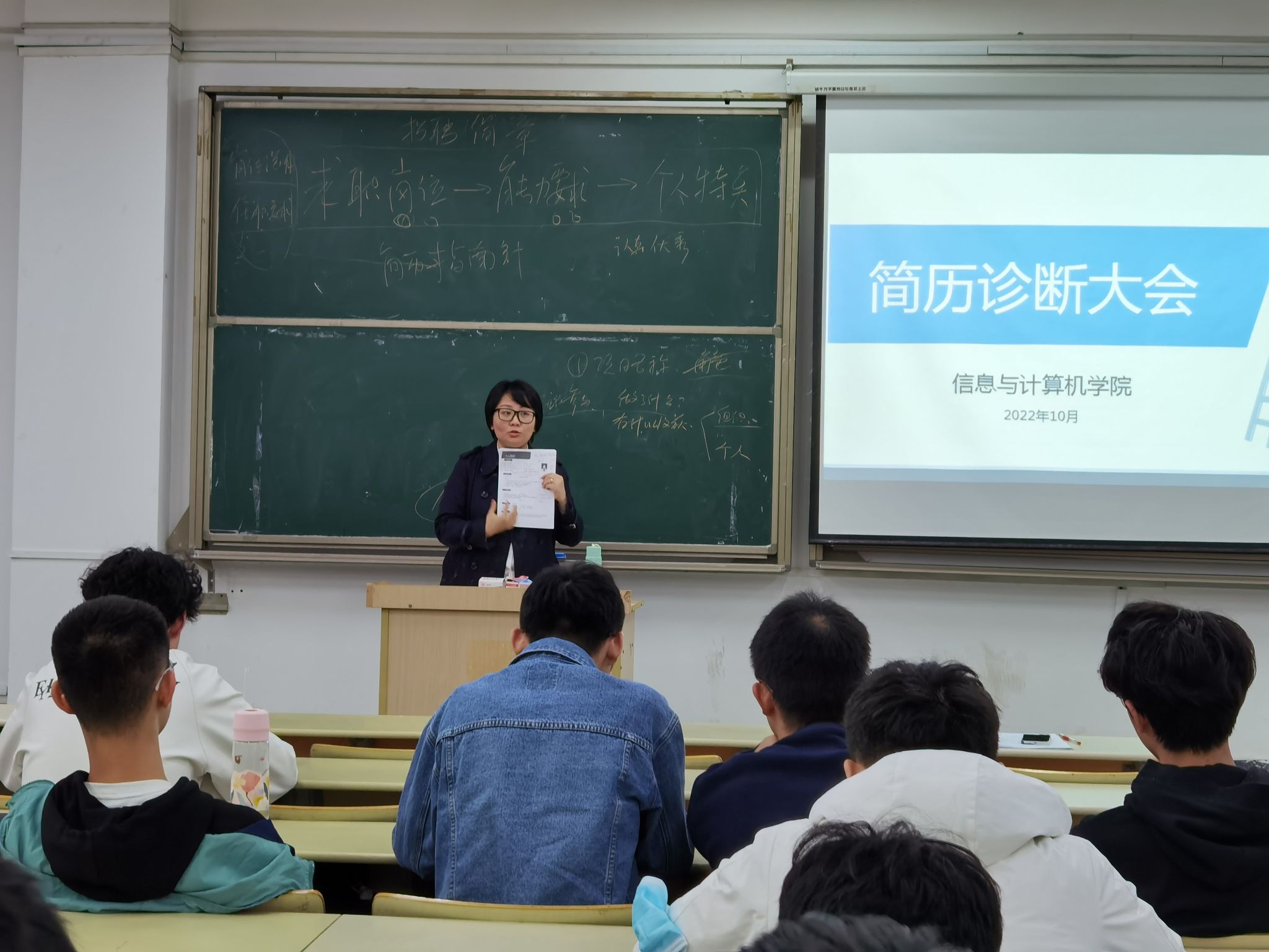 简历诊断,获得求职宝典。10月15日,学院邀请新安人才网党总支副书记、资深面试官朱文颖开展了“简历诊断大会”。通过前期宣传,征集到了70余份简历。朱文颖从面试官角度,逐一指出简历的不足,针对简历中的常见问题,进行剖析,就如何写出一份好简历进行了分享。参与同学表示受益匪浅,毕业班的小陈感慨的说:“以前认为简历要应将自己的能力尽可能多的展现出来,导致简历冗长,重点不突出。现在才明白HR看重的是与岗位特征相匹配的能力,人岗相适。这个简历诊断来的太值了!”