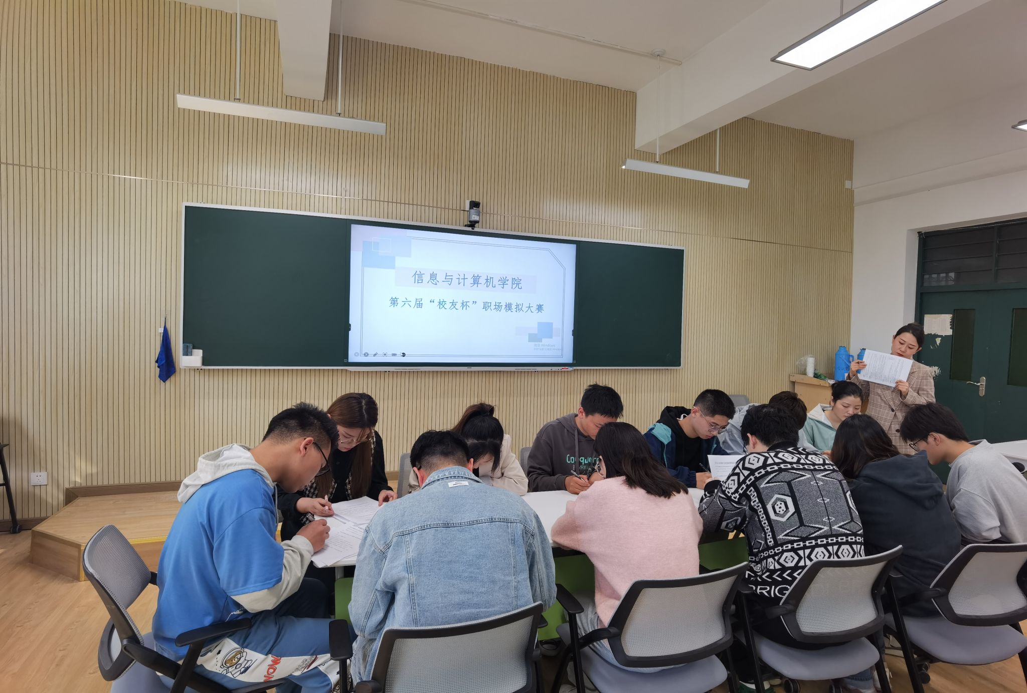 模拟面试,感受实战氛围。10月14日,学院在经技楼305室举办了第六届“校友杯”职场模拟面试大赛决赛,特邀校友企业乐堂动漫人事经理李敏、招聘经理张结良担任主考官。大赛设置简历筛选、竞职演说、评委提问、无领导小组讨论4个环节,让选手们感受真实的招聘氛围。通过点评与指导,参赛同学的面试能力得到大幅提升,2名参赛选手在校职场模拟面试大赛中获得佳绩,学院获得“优秀组织奖”。