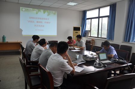 本网讯为推进“讲政治、重规矩、作表率”专题警示教育在学院扎实开展,动物科技学院于8月30日在302会议室召开专题民主生活会。副校长韩军、校办公室副主任戴照力一行到会指导,会议由学院党委书记张平主持,院班子成员、党委委员及部分党支部书记参加了会议。为开好本次民主生活会,会前学院党委班子重点围绕习近平总书记关于党内政治生活、政治文化、政治生态的重要论述以及《关于新形势下党内政治生活的若干准则》和《中国共产党党内监督条例》进行了认真学习,广泛开展了谈心谈话活动和意见建议征集活动,在此基础上认真撰写了对照检查材料和个人发言提纲。