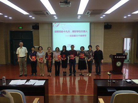 此次活动正值临近第33个教师节,学院为教龄30年以上的教师颁发了荣誉证书和纪念品,并邀请从教32年的英语系罗玲老师作为教师代表发言,罗老师与大家分享了自己从教以来的心得感悟,希望大家继续保持激情,上好每一节课,教好每一位学生。