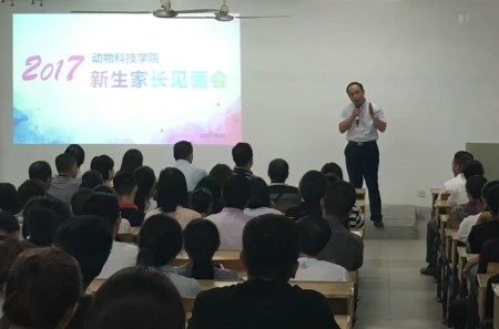 了解促理解,为更好地推进家校联系,9月2日下午4时许,在院318教室隆重召开了2017级新生家长见面会,为新生家长讲好“开学第一课”。院党政领导以及2017级新生辅导员出席了此次见面会。院党委书记张平对新生及家长表示热烈欢迎,勉励新生尽快转变角色,树立奋斗目标,合理安排大学生活与学习,努力拼搏,希望同学们能坚持不懈,秉承“一马当先、智耕天下”的动科精神,勇攀高峰,为学院发展贡献力量。院长耿照玉教授则通过生动形象的事例介绍了动科院的院史院情;通过具体有力的数据展示了学院雄厚的师资力量、前沿的科研水平以及优秀的人才培养成果,并鼓励同学们要刻苦钻研,抓住机遇,迎接挑战。最后,院党委副书记、副院长孙伟通过亲切耐心的互动交流解决了新生、家长共同关心的问题,消除了他们心中的疑惑,并希望同学们能够丰富大学生活,努力坚持人生的航向,驶向理想的港湾。