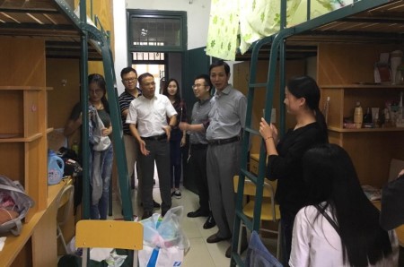 9月2日下午3时,院党委书记张平,院党委副书记、副院长孙伟以及2017级新生辅导员走访新生的每间宿舍,亲切慰问新生。在走访过程中,院领导细致的询问了新生们来自哪个地方,适应情况及他们关心的问题,并给予详细、专业、耐心的解答和建议。同时提醒新生注意寝室人身财产安全,提高自我保护能力,与寝室同学和谐相处,互相帮助,提升人际交往能力并鼓励大家要坚强、独立、积极、健康的迎接美好的大学生活。