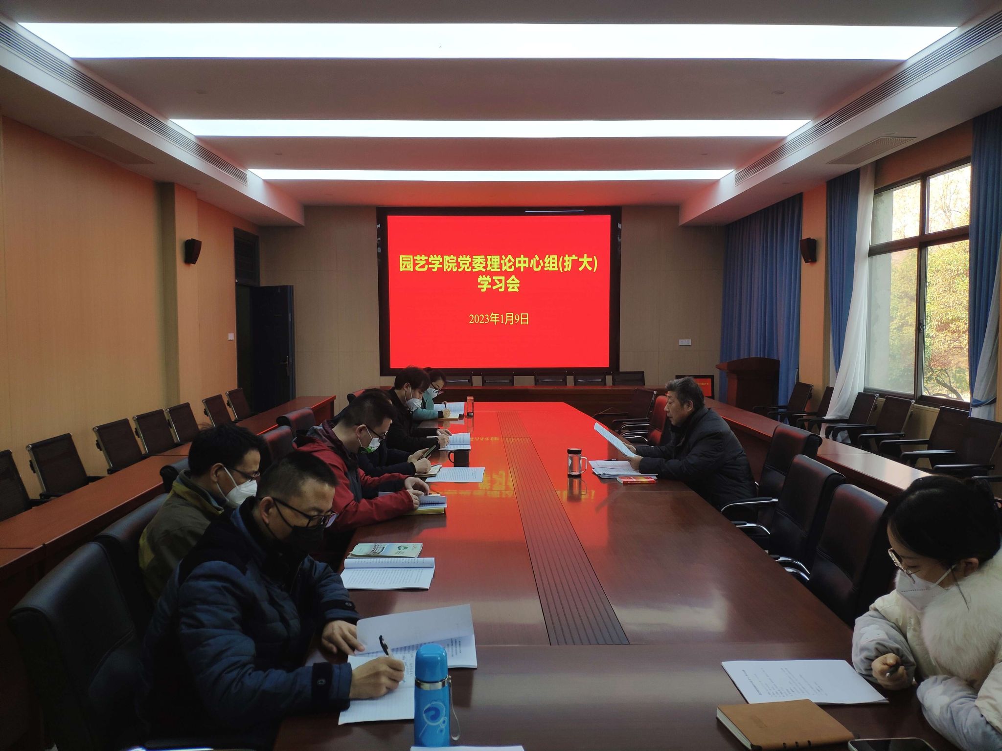 本网讯 1月9日,园艺学院在三楼会议室召开党委理论中心组(扩大)学习会暨民主生活会集中专题学习会。学院党政领导、党委委员、副科以上干部、支部书记、系主任等参加了学习,会议由院党委书记朱绍友主持。