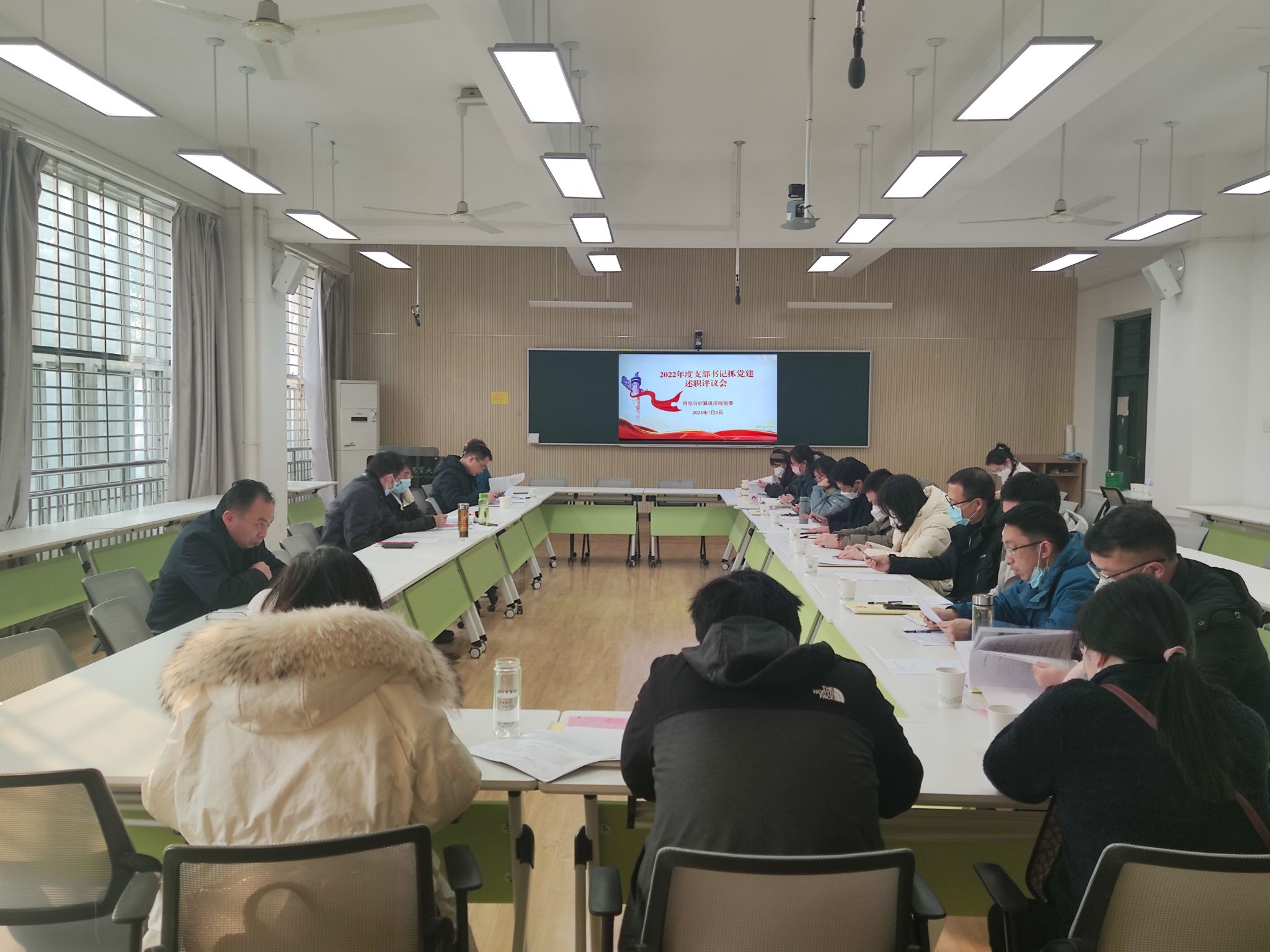 本网讯 1月9日下午,信息与计算机学院党委在学院305教室进行了2022年度党支部书记抓党建述职评议,学院党委委员、党支部书记和支部委员参加了述职会,会议由学院党委书记葛红主持。