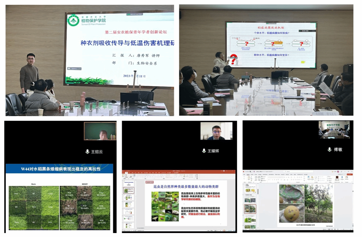 陈静教授等12名引进人才围绕“有害生物多样性及遗传演化、植物与病虫互作机制、新型农药研发”作了最新进展报告,并结合个人研究经历和国家自然科学基金申报同与会师生进行了热烈研讨。报告会场学术氛围浓厚,拓宽了大家的科研视野与思路,也为植保学科高水平成果和人才培育提供了信心。院党委副书记刘柳勉励引进人才积极调整心态,快速转换角色,融入科研团队,争取在今年的国家自然科学基金立项等方面创出佳绩。(作者:刘月新、蒋磊 一审:丁放 二审:张华建 三审:周晓璇)