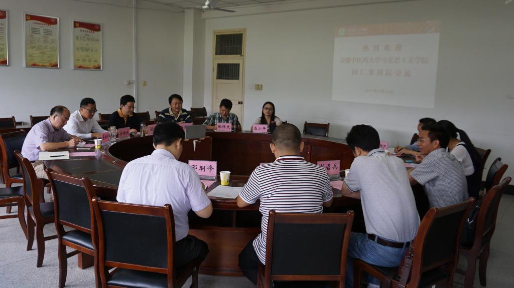 黄洪雷就我校马克思主义学院近年来在思政理论课课程建设、教学改革、网络考试、“形势与政策”课校本资源建设、教师学术交流和实践研修等方面的一些做法和成效向对方进行了详细介绍。他指出,安徽农业大学和安徽中医药大学同为省属高校,思政理论课教学和改革要围绕学校发展,结合学校办学特色积极构建符合本校学生需求的思政理论课教学体系。